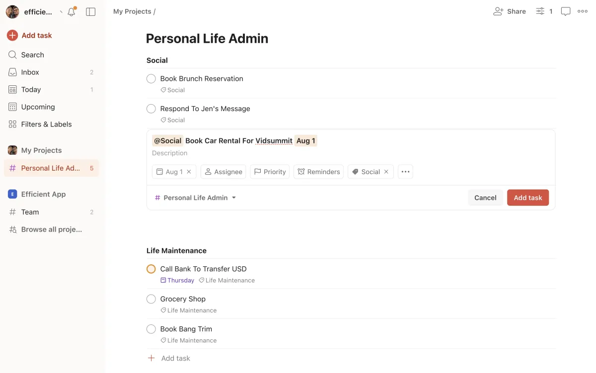 Todoist is a task management alternative for those who want an all around good-yet-basic task management app. With Todoist, you'll get task lists, kanban boards, and a calendar view (on the Pro tier). If you don't want all the bell's and whistles, yet want a modern task management app for personal tasks, then consider Todoist.